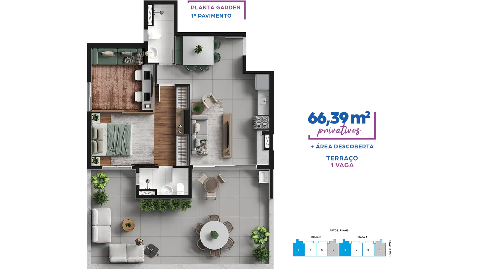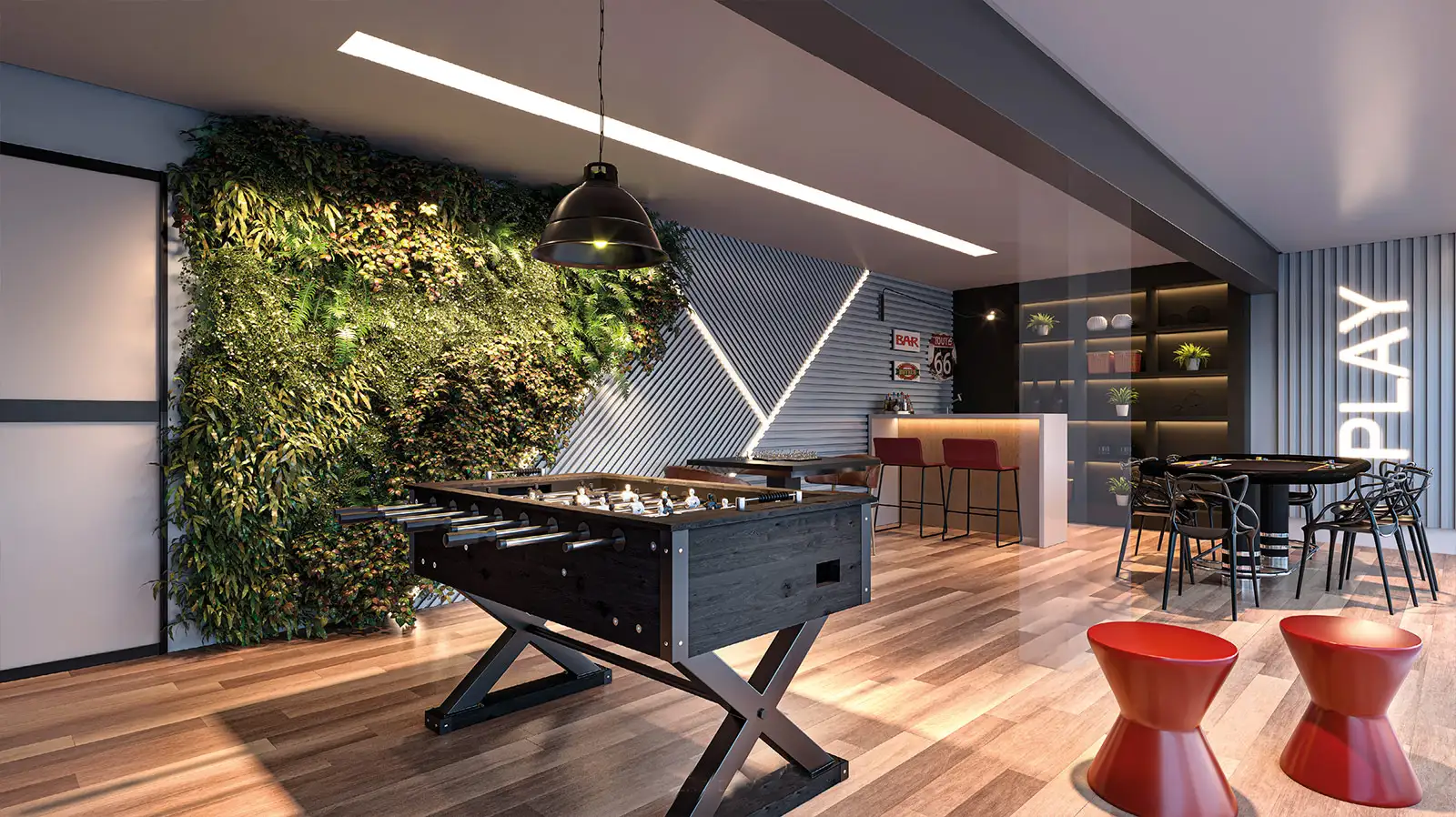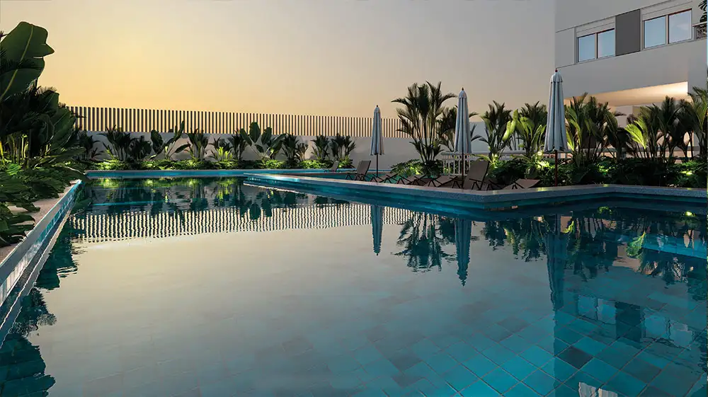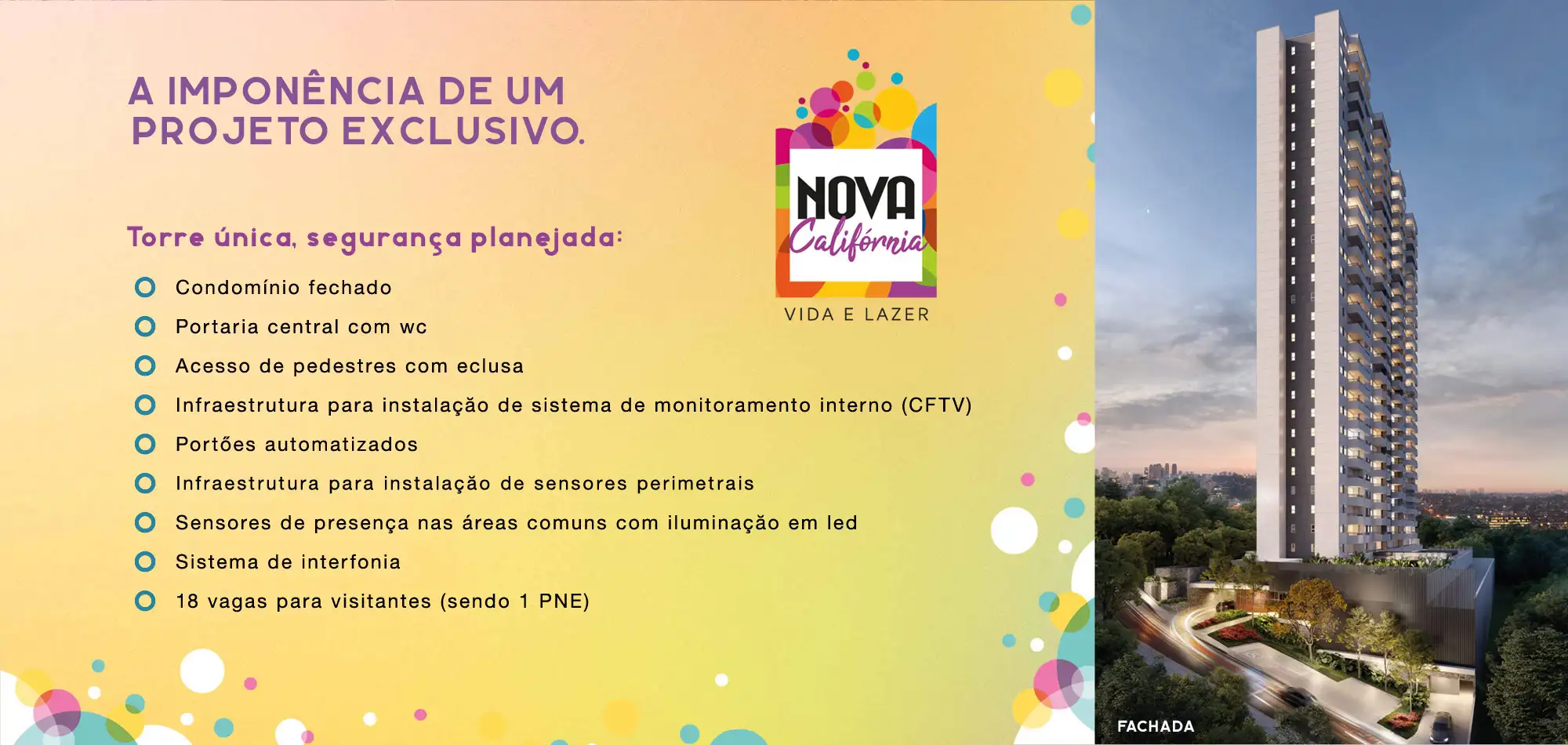R.I. na Matrícula N°154.490 no C.R.I. da Comarca de Barueri em 28/10/2025. A inclusão no Programa Minha Casa Minha vida está vinculada ao enquadramento de renda e regras do Programa, à época da assinatura do contrato de financiamento. Apesar de todo cuidado na obtenção das informações contidas neste material, elas não devem ser consideradas como parte integrante de qualquer contrato. **As áreas comuns e de lazer serão entregues equipadas e decoradas de acordo com o memorial descritivo. As ilustrações, artes, fotos, mobiliário, vegetação e peças de decoração dos materiais de divulgação têm caráter exclusivamente promocional por tratar-se de bem a ser construído, sendo que as condições de comercialização projetos e especificações são aquelas dos contratos e memoriais a serem firmados com os adquirentes. A vegetação será entregue em diferentes tamanhos e portes. Fotos ilustrativas. Perspectivas artísticas. Local do empreendimento: Rua Chaves, 658 – Jardim California/ Barueri.
