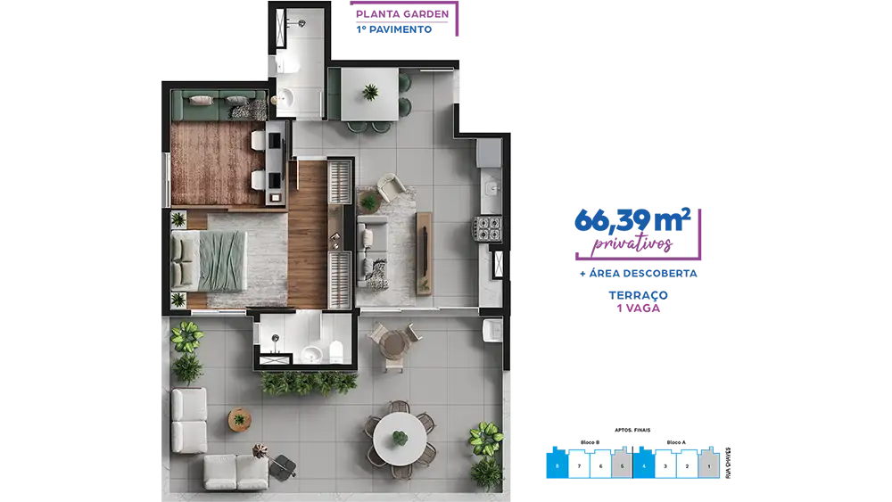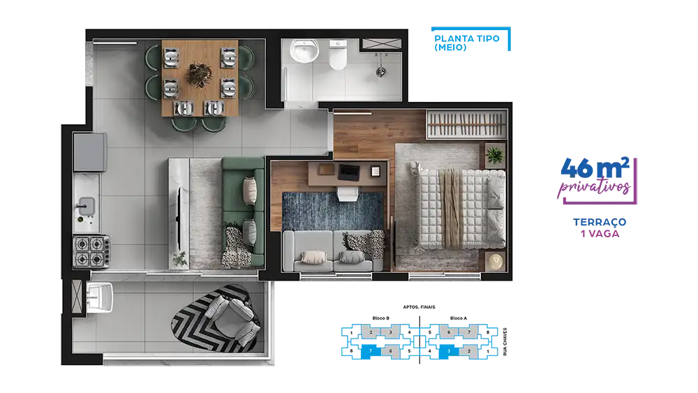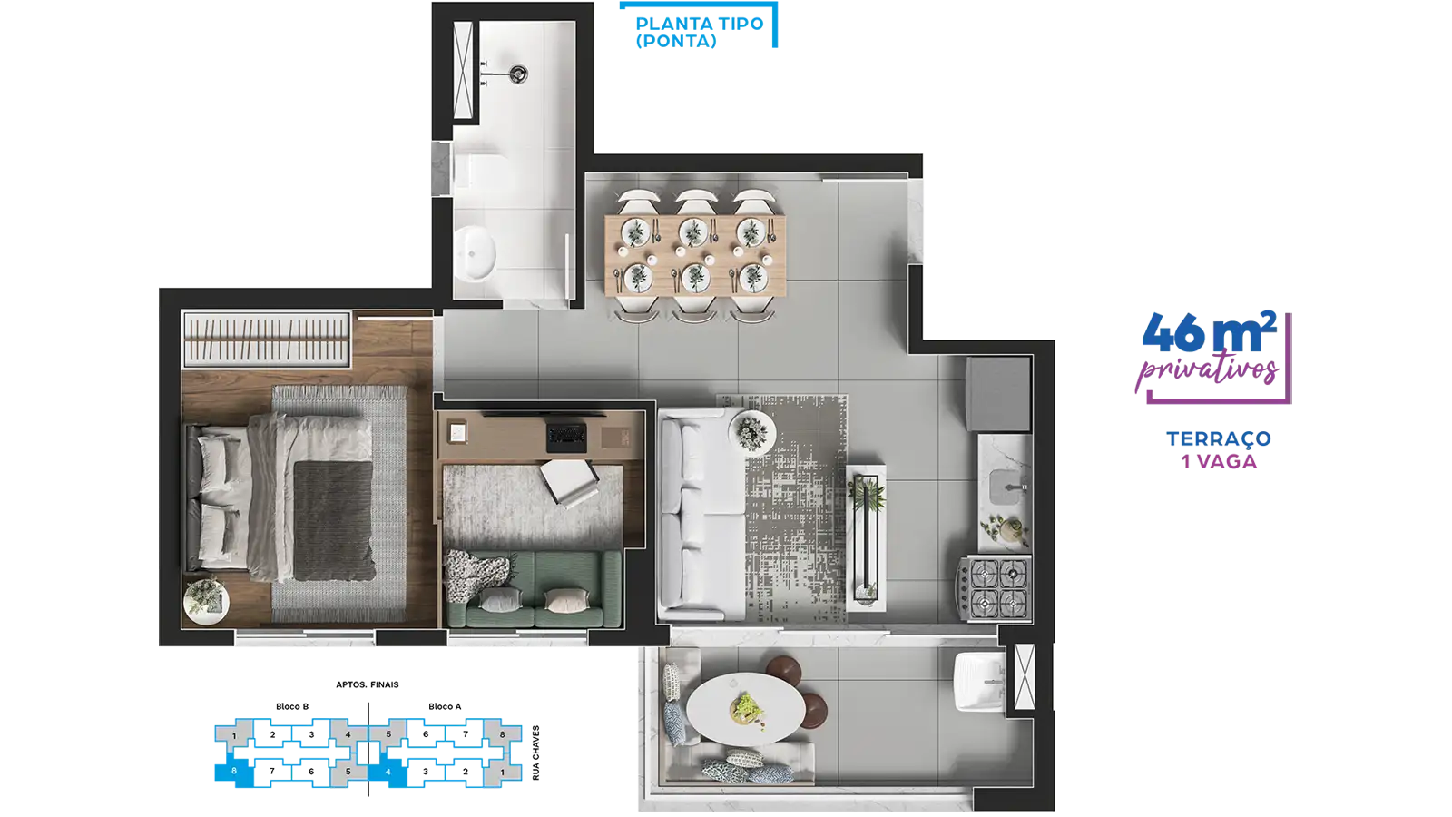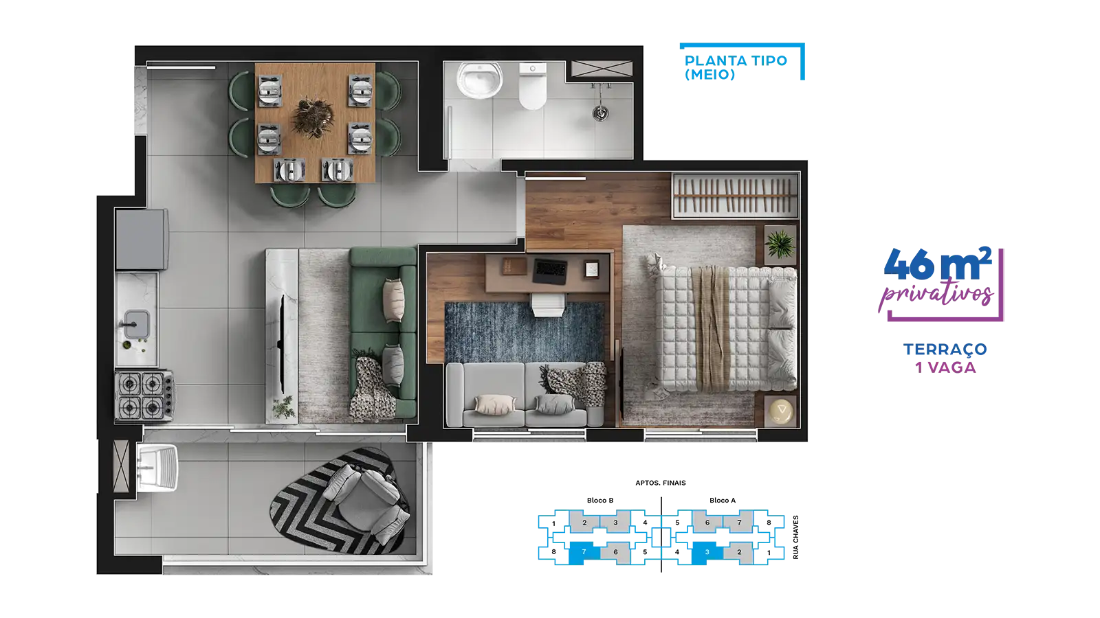 R.I. na Matrícula N°154.490 no C.R.I. da Comarca de Barueri em 28/10/2025. A inclusão no Programa Minha Casa Minha vida está vinculada ao enquadramento de renda e regras do Programa, à época da assinatura do contrato de financiamento. Apesar de todo cuidado na obtenção das informações contidas neste material, elas não devem ser consideradas como parte integrante de qualquer contrato. **As áreas comuns e de lazer serão entregues equipadas e decoradas de acordo com o memorial descritivo. As ilustrações, artes, fotos, mobiliário, vegetação e peças de decoração dos materiais de divulgação têm caráter exclusivamente promocional por tratar-se de bem a ser construído, sendo que as condições de comercialização projetos e especificações são aquelas dos contratos e memoriais a serem firmados com os adquirentes. A vegetação será entregue em diferentes tamanhos e portes. Fotos ilustrativas. Perspectivas artísticas. Local do empreendimento: Rua Chaves, 658 – Jardim California/ Barueri.